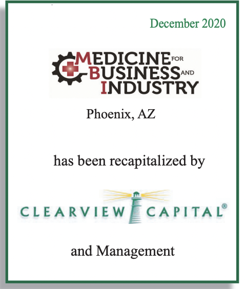 Stamford, CT, January 12, 2021 — Clearview Capital Fund IV, L.P. and its affiliates (“Fund IV”) announced today the recapitalization, in partnership with management, of MBI Industrial Medicine, Inc. and its affiliates (collectively, “MBI” or the “Company”). The transaction closed on December 18, 2020.